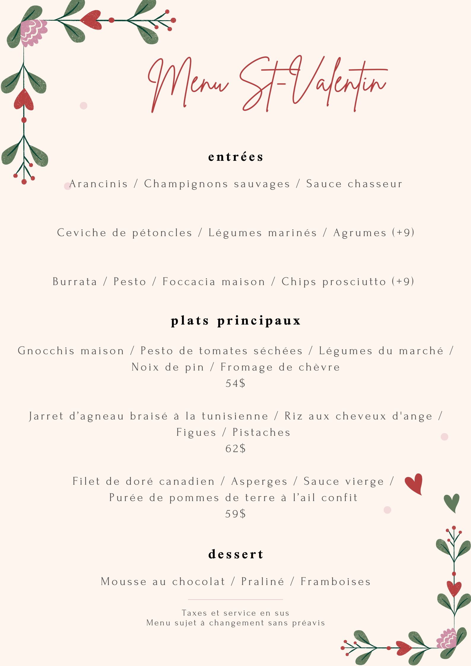 Table d’hôte Saint-Valentin